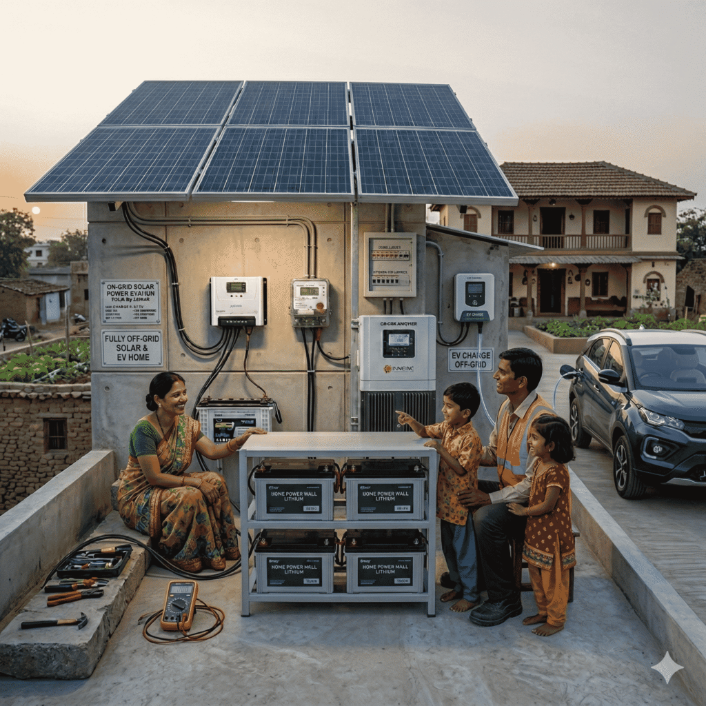 A solar power system which is not dependent on the local utility grid for its operations is known as Off-Grid Solar System. It relies on the electricity that it produces and stores rather than relying on the utility grid for power. The Off-Grid Solar System mainly comprises solar panels, an inverter and batteries wherein the inverter converts the DC (Direct Current) from the batteries and Solar Panels into AC (Alternating Current) which is used by appliances.